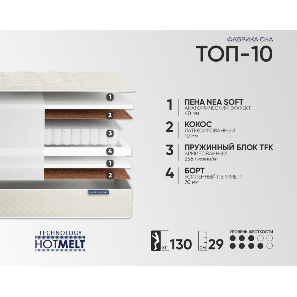 Для расчёта рейтинга используются общие оценки товара и оценки по характеристикам за всё время. Поделитесь своим мнением о товаре: Матрас Фабрика Сна Топ-10