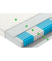 Блок независимых пружин Smartpocket Pro 5-Zone (каждая пружина в отдельном чехле из спанбонда) и рассчитана на определённую нагрузку для точечной поддержки. Это достигается использованием пружин разной жесткости, что дает заметное улучшение ортопедических свойств. Оптимизирует давление и наилучшим образом осуществляет функциональную поддержку позвоночника и обеспечивает индивидуальную жесткость для каждой зоны тела человека, что способствует хорошему сну и отдыху. Плотность – 256 пружин на м. кв.