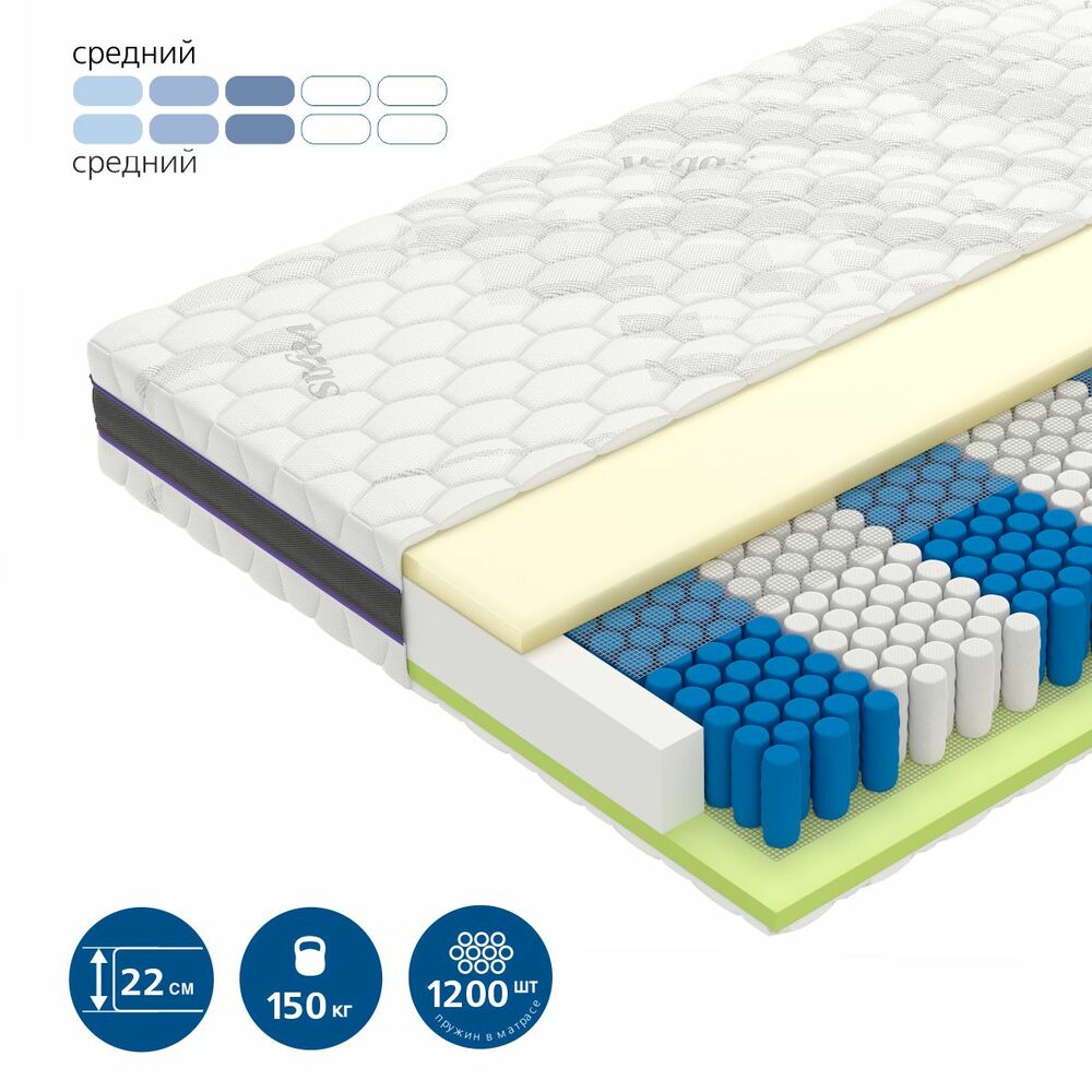 Блок независимых пружин Vernestet X1200 7-Zone (каждая пружина в отдельном чехле из спанбонда) плотностью – 1200 пружин в двуспальном матрасе. Усовершенствованный независимый пружинный блок с 7 зонами комфорта и поддержки во время сна. Пружины расположены в виде пчелиных сот, что увеличивает плотность их размещения, повышая ортопедический эффект и допустимую нагрузку на спальное место. Диаметр пружины 60 мм.