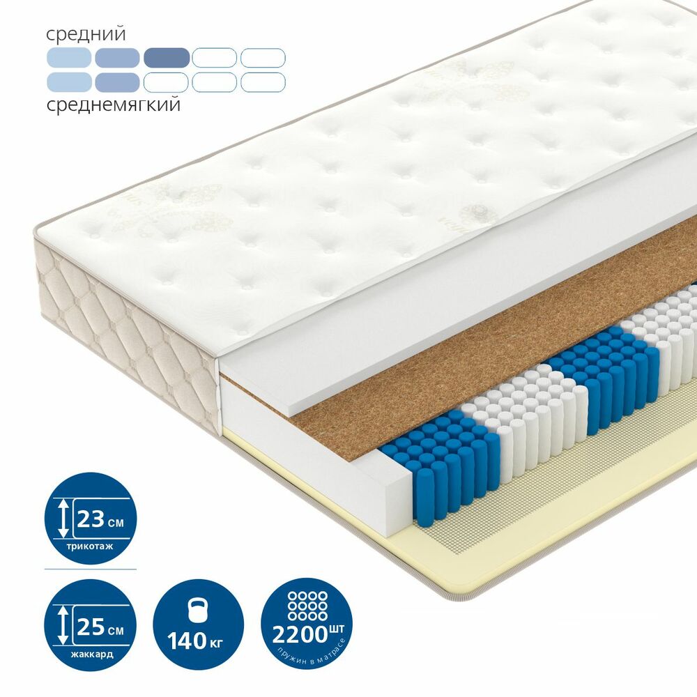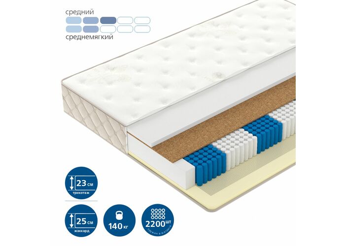 Блок независимых пружин Multipocket R2200 7-Zone (каждая пружина в отдельном чехле из спанбонда) плотностью – 2200 пружин в двуспальном матрасе. Блок независимых пружин из стали с выраженными 7 зонами поддержки. Чередование упругих и более мягких зон учитывает анатомию тела человека, а небольшой диаметр пружины усиливает ортопедический эффект, плавно распределяя нагрузку по всей длине матраса. Диаметр пружины 40 мм.