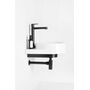 Круглый умывальник дополняется элементом дизайна в виде кронштейна белого цвета, черного или из нержавеющей стали. Магия элегантности объединяет в один тон сочетание кронштейна, смесителя, сифона и слива.
