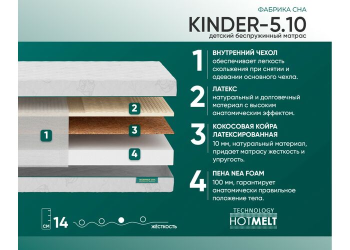 Для расчёта рейтинга используются общие оценки товара и оценки по характеристикам за всё время. Поделитесь своим мнением о товаре: Матрас Фабрика сна Киндер-5.10