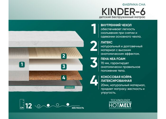 Для расчёта рейтинга используются общие оценки товара и оценки по характеристикам за всё время. Поделитесь своим мнением о товаре: Матрас Фабрика сна Киндер-6
