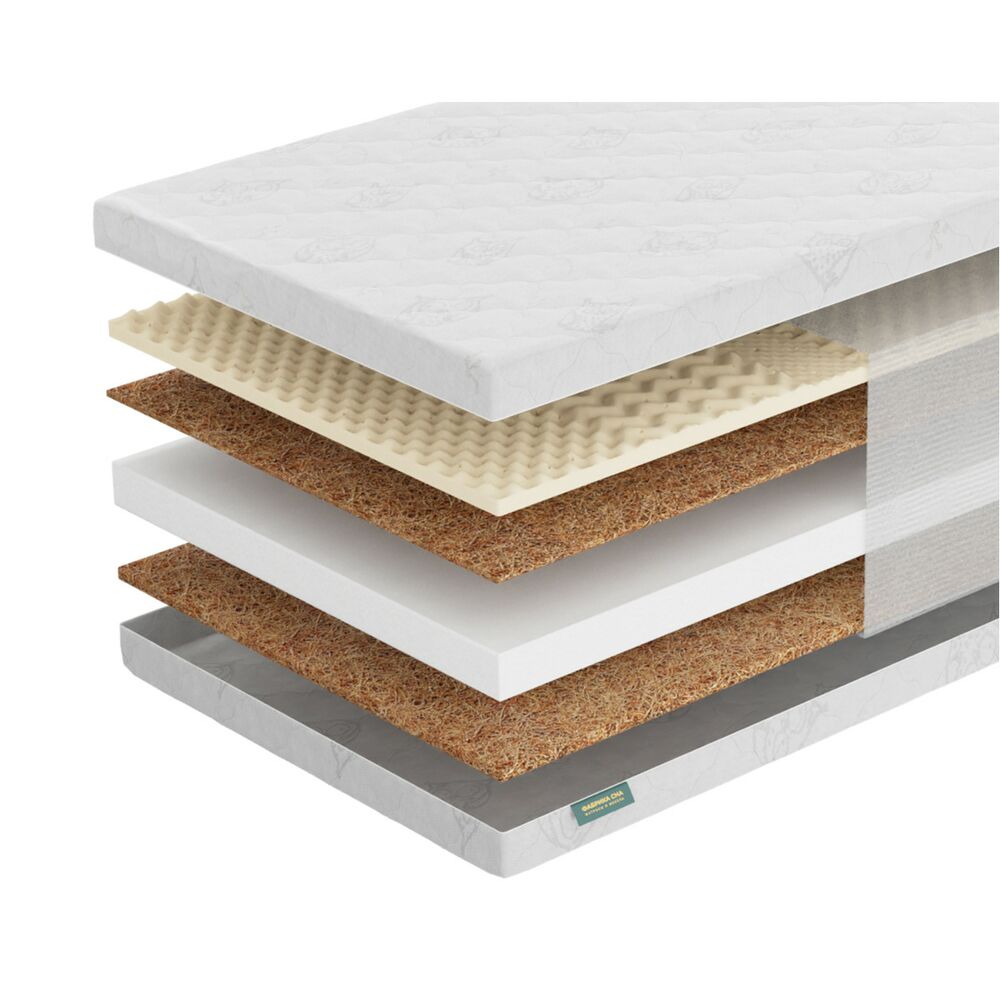 Кокосовая койра - 100% натуральный материал с уникальными свойствами. Койра, скрепленная натуральным латексом, дает объемную упругую воздухопроницаемую структуру. Такой материал используется в моделях, предназначенных для любителей более жесткого и упругого спального места. Естественные вентиляционные качества, эластичность, прочность, упругость, гигиеничность и антиаллергенность, наряду с очень долгим сроком службы, делают этот материал идеальным для наполнения матраса.
