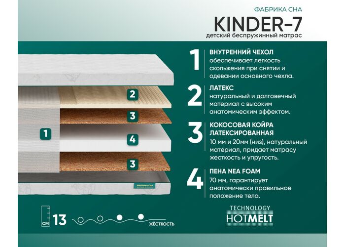 Для расчёта рейтинга используются общие оценки товара и оценки по характеристикам за всё время. Поделитесь своим мнением о товаре: Матрас Фабрика сна Киндер-7