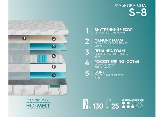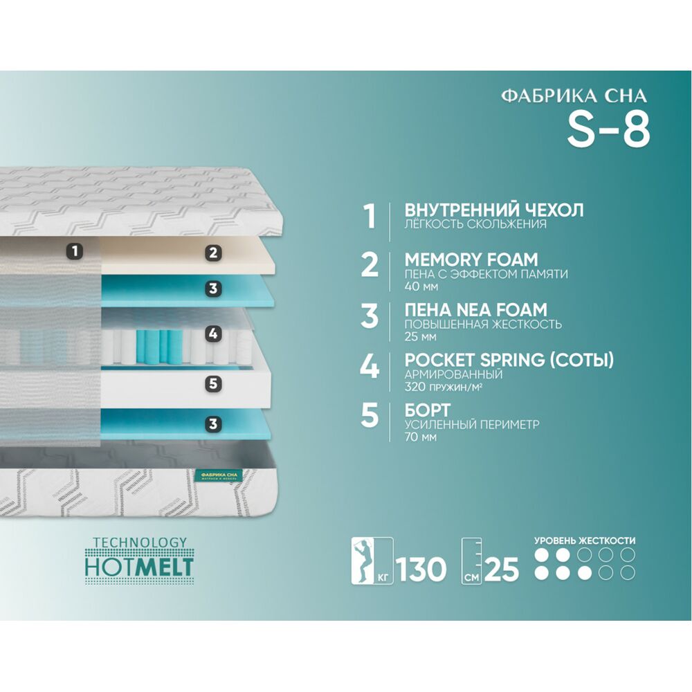 Для расчёта рейтинга используются общие оценки товара и оценки по характеристикам за всё время. Поделитесь своим мнением о товаре: Матрас Фабрика сна S-8