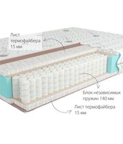 Блок независимых пружин Tango (каждая пружина немного сжата и помещена в отдельный пакет из высокопрочного нетканого материала). Плотность - 520\600 пружин на спальное место. Комбинированный блок делит матрас на две половины и позволяет индивидуально подобрать жесткость под каждого покупателя, сохраняя при этом матрас как единое целое изделие. Это гарантирует комфортные ощущения во время сна и отдыха.