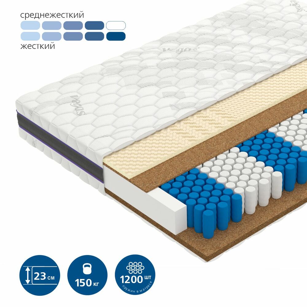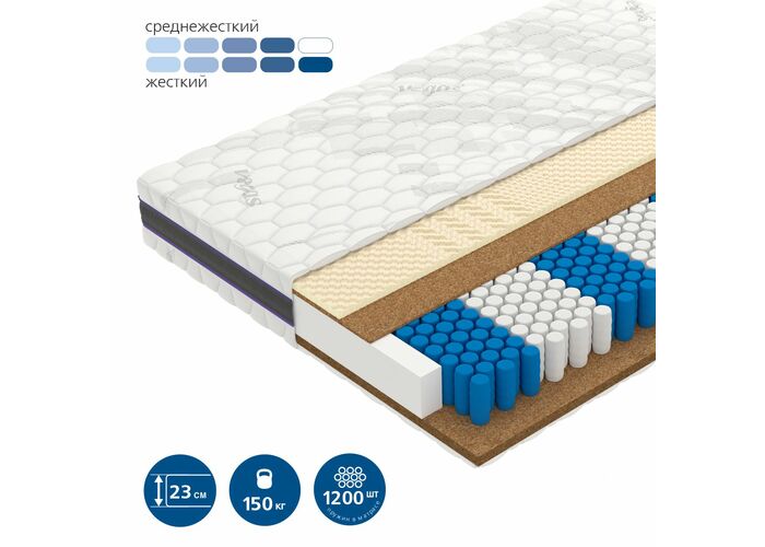 Блок независимых пружин Vernestet X1200 7-Zone (каждая пружина в отдельном чехле из спанбонда) плотностью – 1200 пружин в двуспальном матрасе. Усовершенствованный независимый пружинный блок с 7 зонами комфорта и поддержки во время сна. Пружины расположены в виде пчелиных сот, что увеличивает плотность их размещения, повышая ортопедический эффект и допустимую нагрузку на спальное место. Диаметр пружины 60 мм.