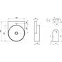 Круглый умывальник дополняется элементом дизайна в виде кронштейна белого цвета, черного или из нержавеющей стали. Магия элегантности объединяет в один тон сочетание кронштейна, смесителя, сифона и слива.